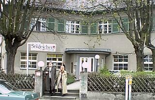 Verfehlen kann man sie eigentlich nicht. Wer aus Steglitz kommend oder aus Zehlendorf die Königin-Luise-Straße entlangfährt, auch Studenten und Museumsbesucher, die in Dahlem-Dorf aus der U-Bahn steigen - auf beiden Seiten der Königin-Luise-Straße , gleich neben dem U-Bahnhof, findet man Schleichers Buchhandlung. „Die einzige geteilte Buchhandlung im vereinten Berlin" - so kalauerte Günther Bellmann in der Berliner Morgenpost . Begonnen hat die Buchhandlung - ungeteilt - nur auf der linken Seite der Königin-Luise-Straße, von Steglitz aus betrachtet, im Gebäude des Gartenlokals „Luise" .Damals trug es noch den Namen seines Gründers , „Cafe` und Restaurant Schilling". Ältere Steglitzer haben wehmütige Erinnerungen an fröhliche Sonntagsausflüge mit der Straßenbahn nach Dahlem-Dorf und rauschende Ballnächte im großen Saal des Restaurants.Das war vor 1945. Als JÜRGENS BUCHLADEN , so hieß die Buchhandlung bei ihrer Gründung, am 6.Juni 1968 erstmals seine Tür öffnete, rechts neben dem Eingang zum Restaurant über 5 Stufen erreichbar, war die Pracht des kurz nach der Jahrhundertwende errichteten Gastronomie- Betriebes nur noch erahnbar. Zwar standen die Kastanien im großen Gastgarten jetzt majestätisch und spendeten den Gästen wohltuende Kühle im Sommer. FU-Professor Ossip K. Flechtheim und seine Frau ließen sich im Garten ihr Sonntagsmahl vom Kellner Toni servieren, einem Vorbild an gastronomischer Service-Perfektion und überhaupt die „Seele des Hauses".